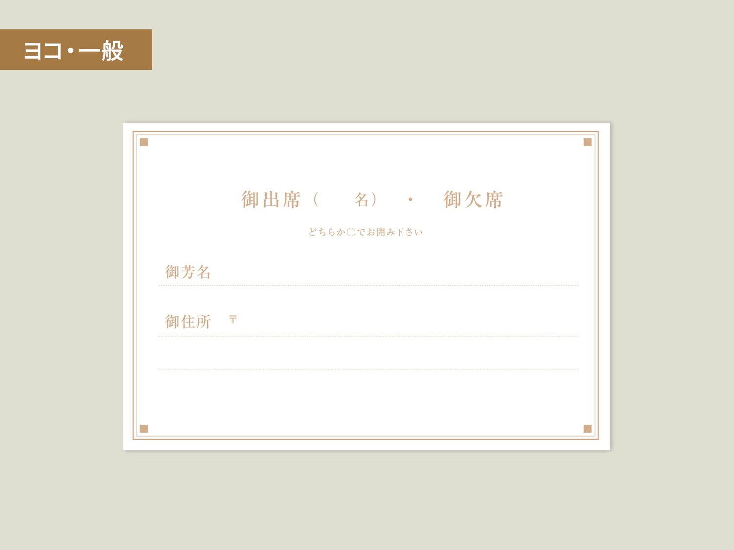 - 官製ハガキのデザインは、「ヨコ一般」と 「タテ飾り罫」の2種類からお選びください。