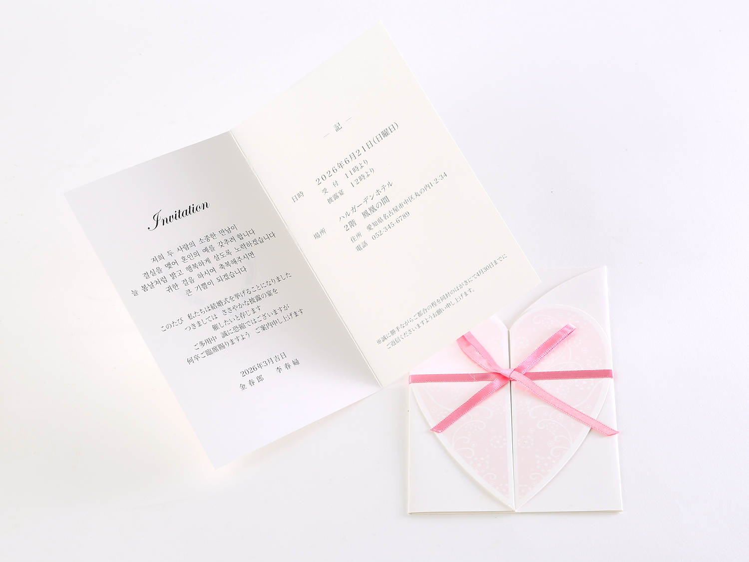 ピンクのリボンとハートが可愛い!もちろん中紙もピンクです!