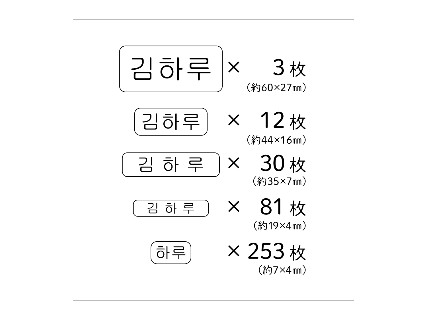 ハングル耐水ネームシール(3文字まで)/新入園・入学