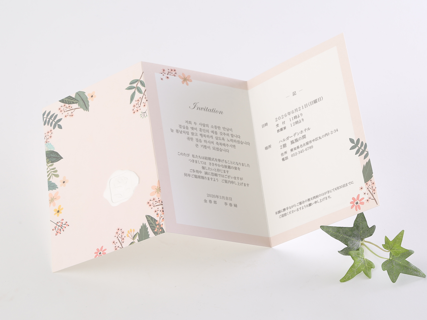 - 招待状の例文はオーダーフォーム内でご覧頂けます。
