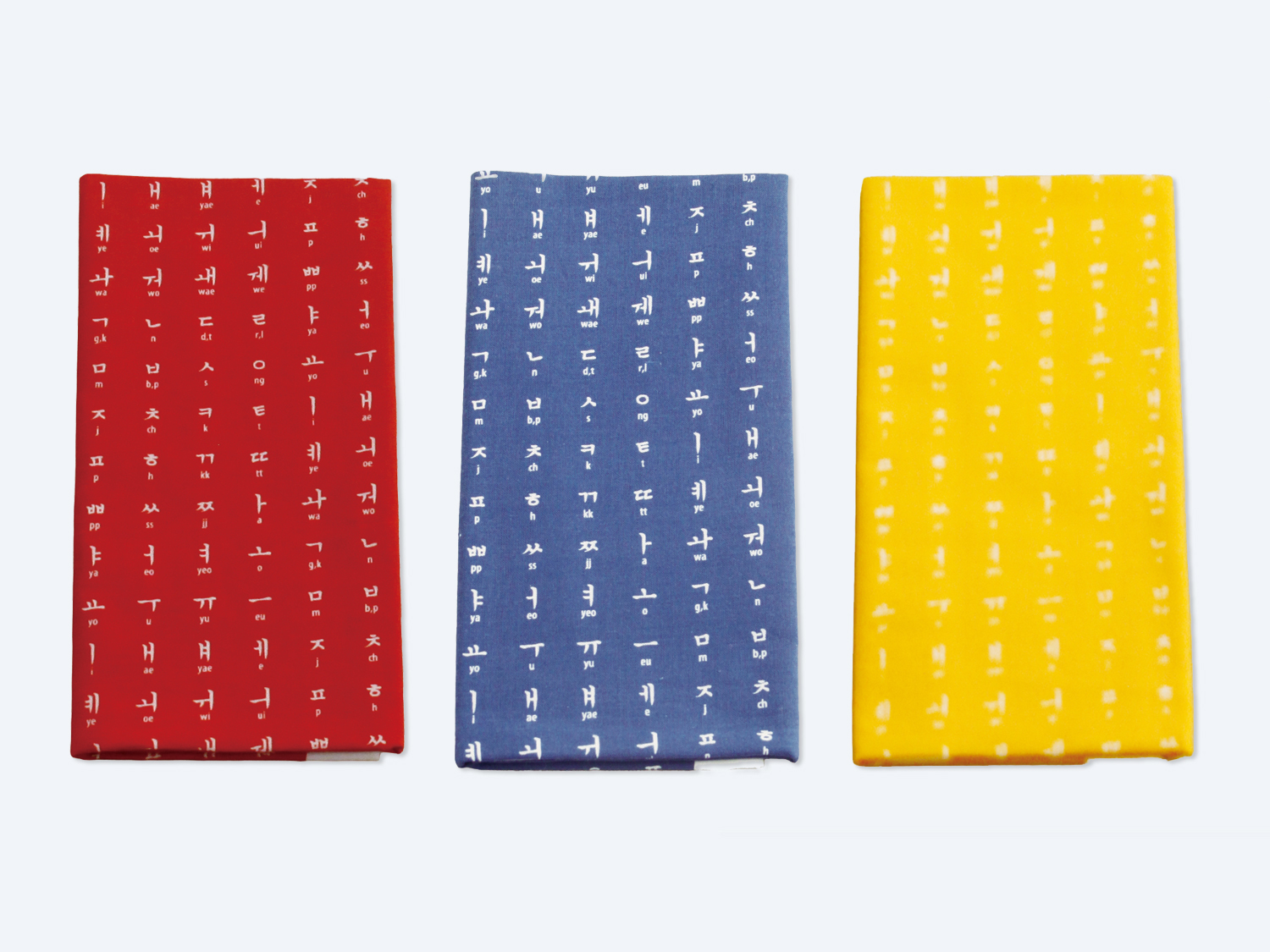 一面にハングル文字の各母音と子音が並んでいます。