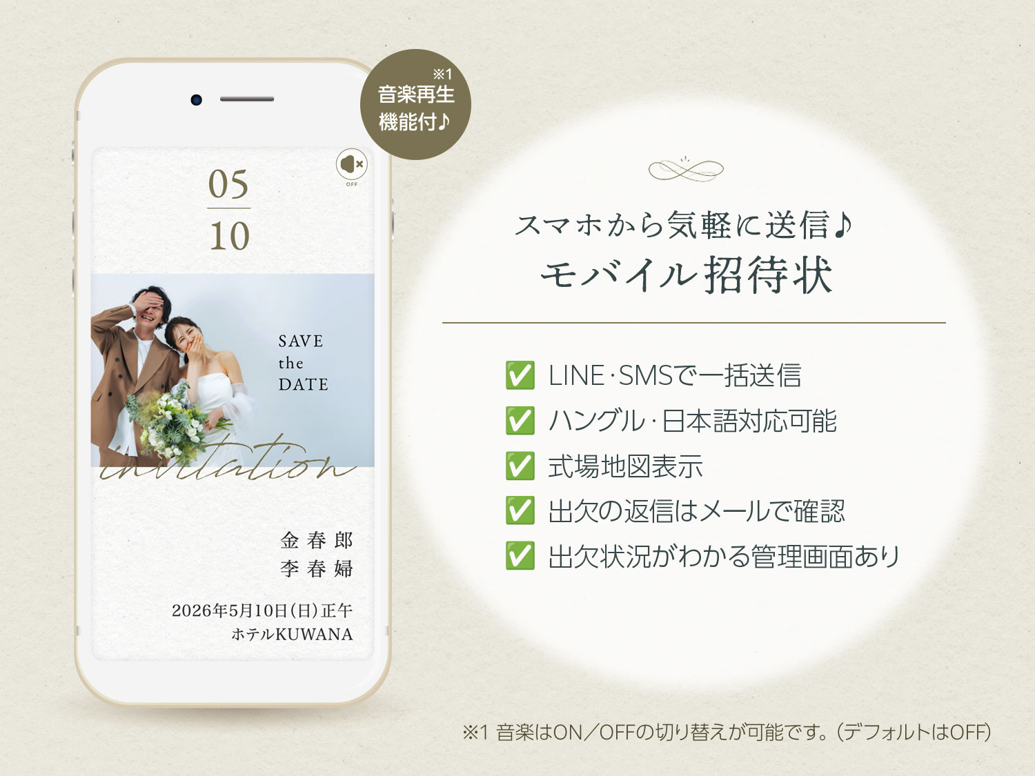 • ※1 音楽はON/OFFの切り替えが可能です。(デフォルトはOFF)